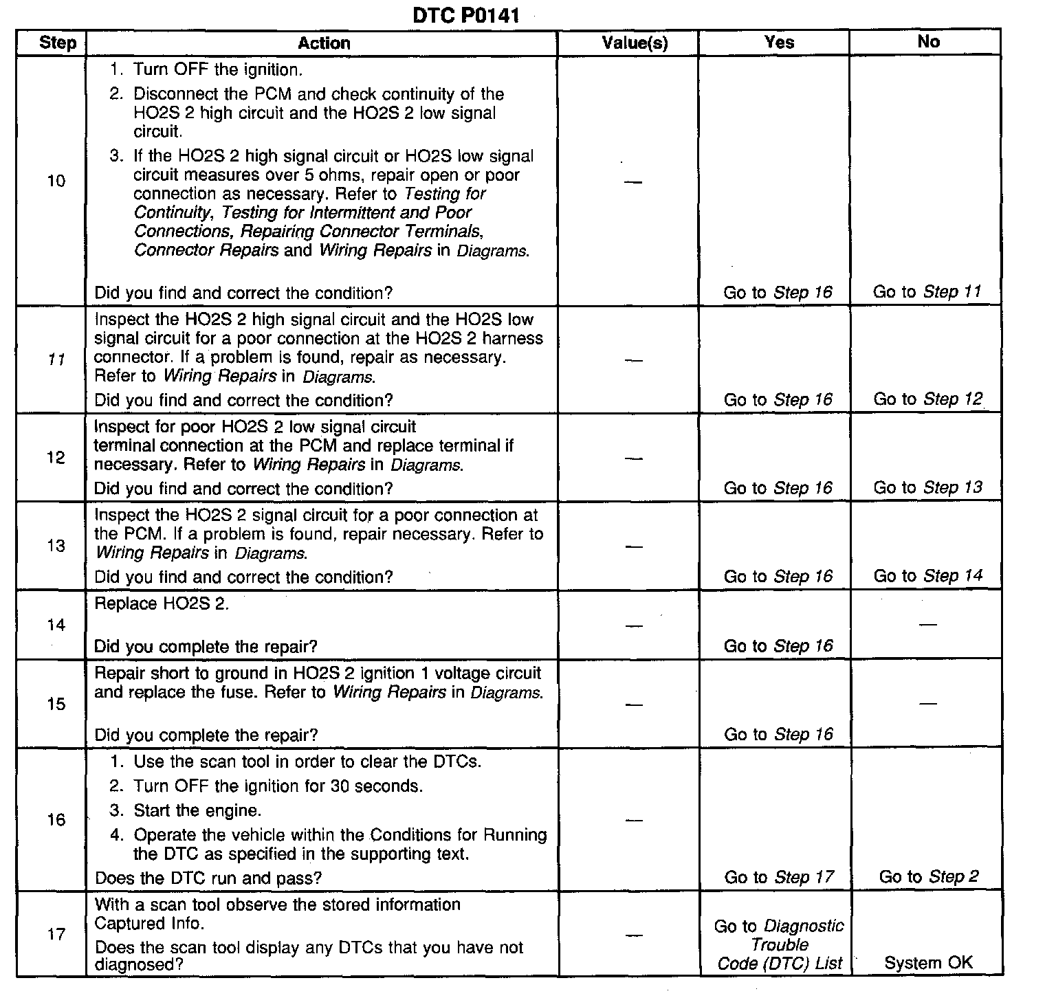 11. An open HO2S high or low signal circuit can cause the DTC to set with a good HO2S. Check the HO2S high and the HO2S low signal circuits before replacing the sensor.