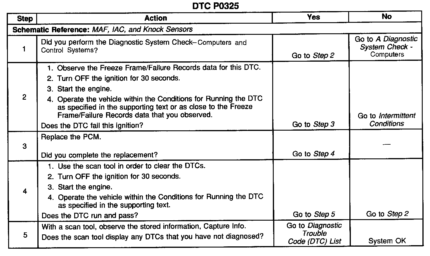 CIRCUIT DESCRIPTIONThe Knock Sensors (KS) produce an AC signal under all engine operating conditions. The Powertrain Control Module (PCM) calculates the average voltage range of each knock sensors signal. If the KS system is operating normally, the PCM should monitor the KS signal voltage varying above and below the calculated average range. This DTC will set if the PCM malfunctions in a manner which will not allow proper diagnosis of the KS system.
