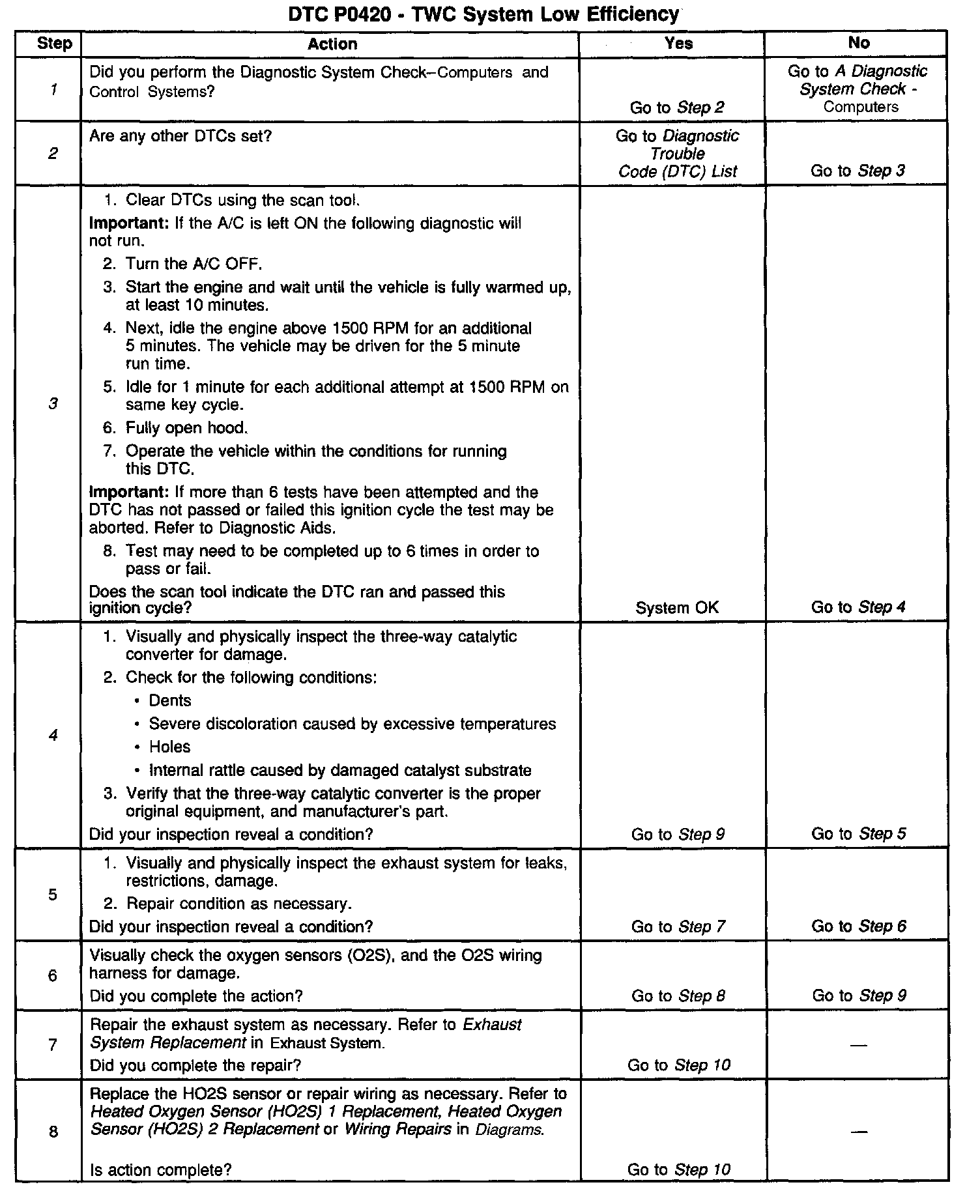 4. This step includes checks for conditions that can cause the three-way converter to appear degraded. Repair any conditions found before proceeding with this table.