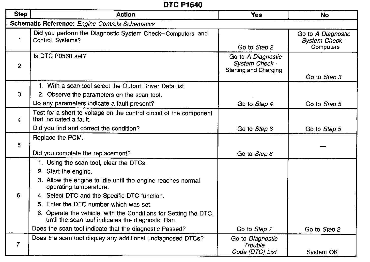 CIRCUIT DESCRIPTIONOutput Driver Modules (ODM) are chips that are inside the Powertrain Control Module (PCM). ODMs provide grounded outputs that control devices. Each output has an internal feedback circuit that connects to the PCM microprocessor. ODM 1 determines if the voltage or the current may cause damage to the PCM. The PCM monitors voltage through the Ignition 1 input. Any incorrect current that is on a circuit to the ODM will cause the ODM to report this DTC.