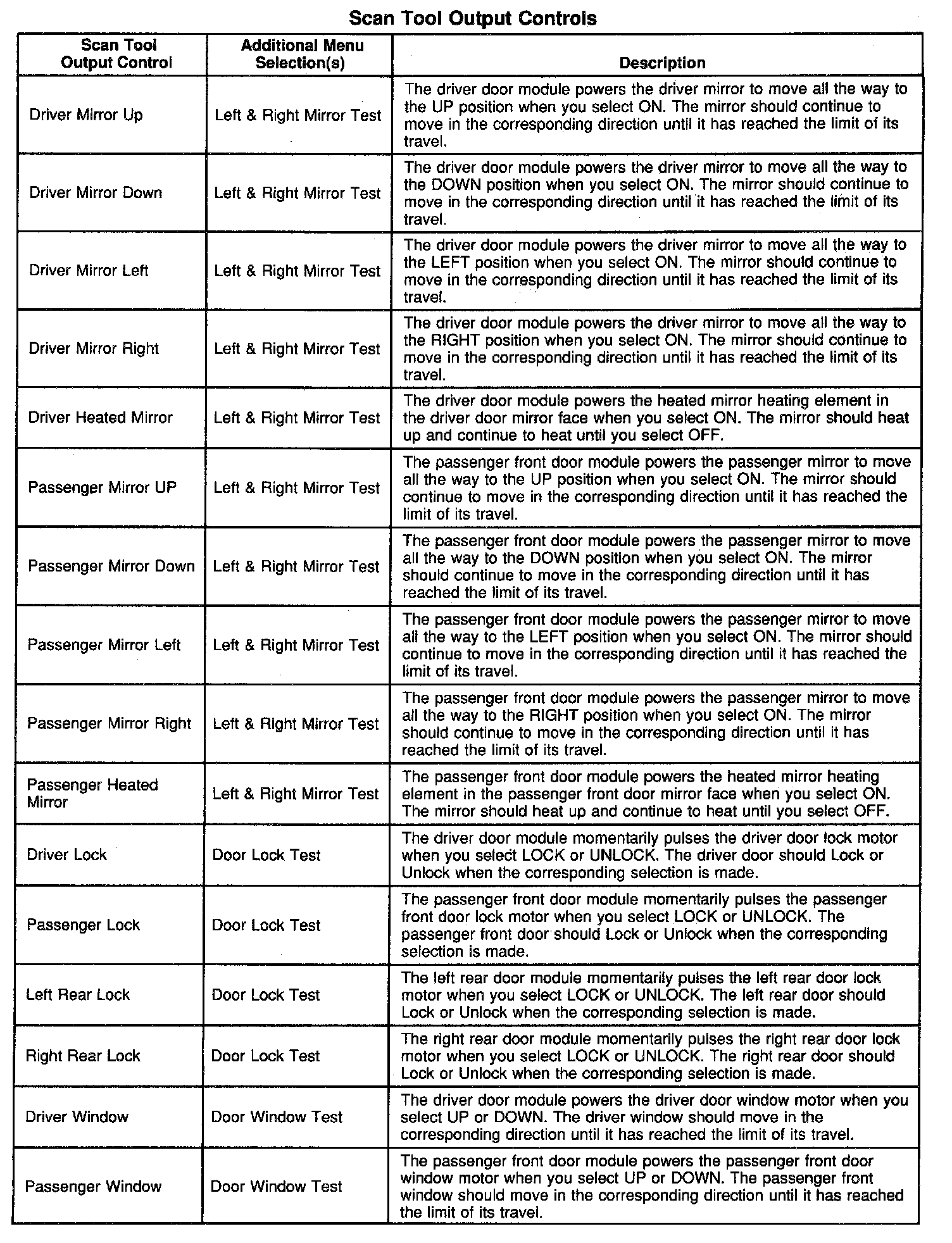 Scan Tool Output Controls