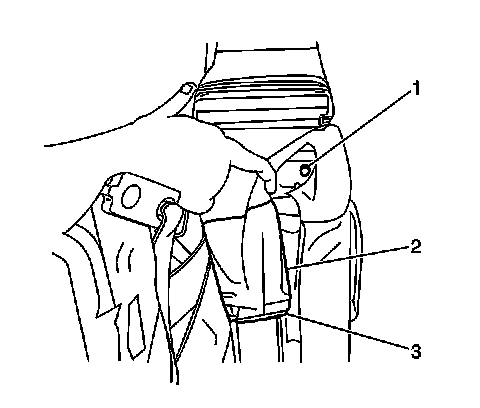4. Install a new hog ring (3) to secure the seat trim (2) in order to cover the retaining nuts.
