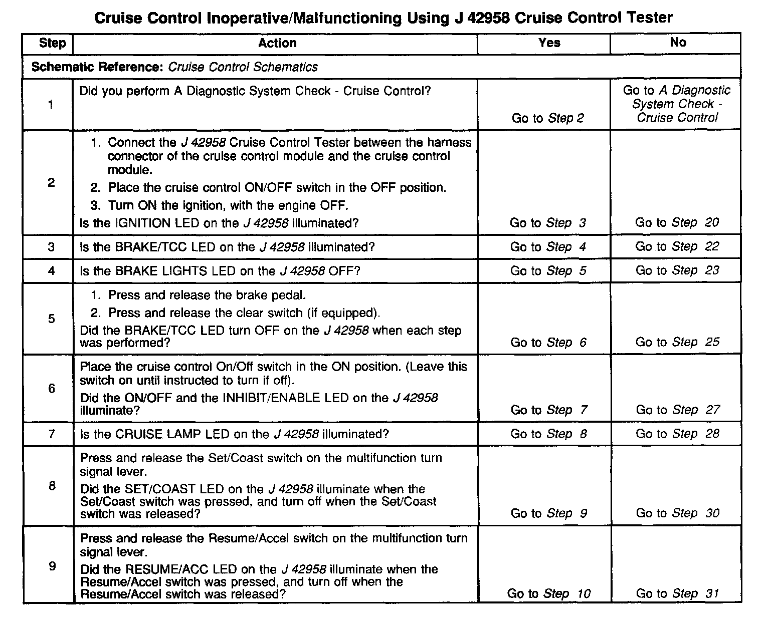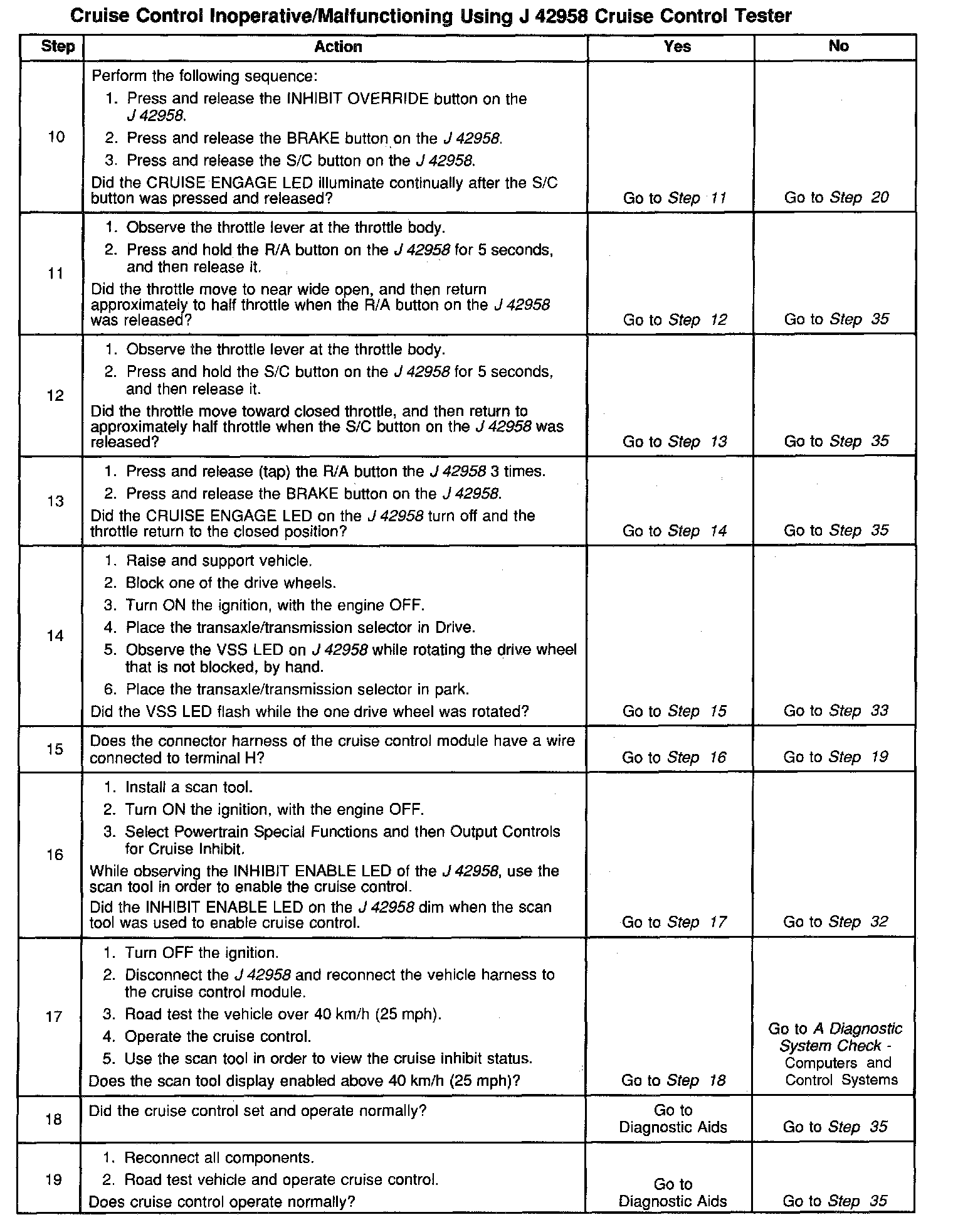 The PCM will inhibit (not allow) cruise control if one or more of the following has occurred: