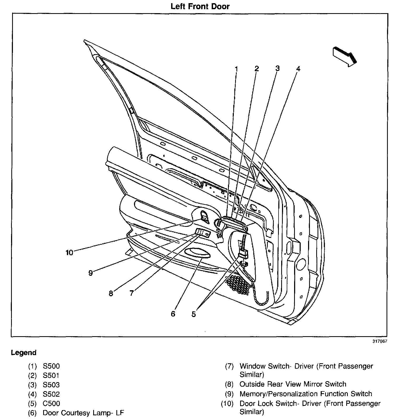 On the left front door trim panel, on the armrest