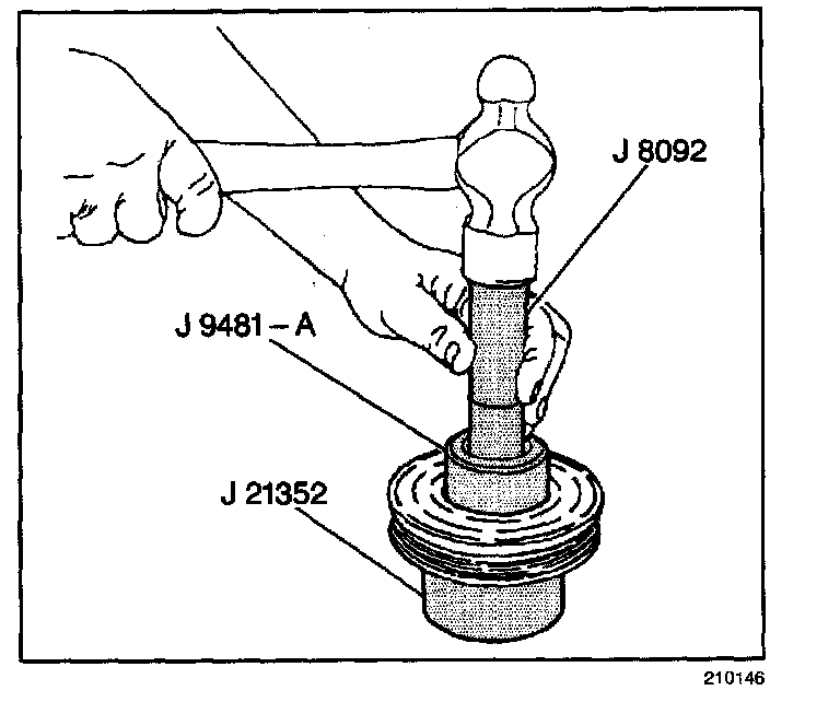 1. Place the pulley rotor on the J 21352-A in order to fully support the rotor hub during the bearing installation.