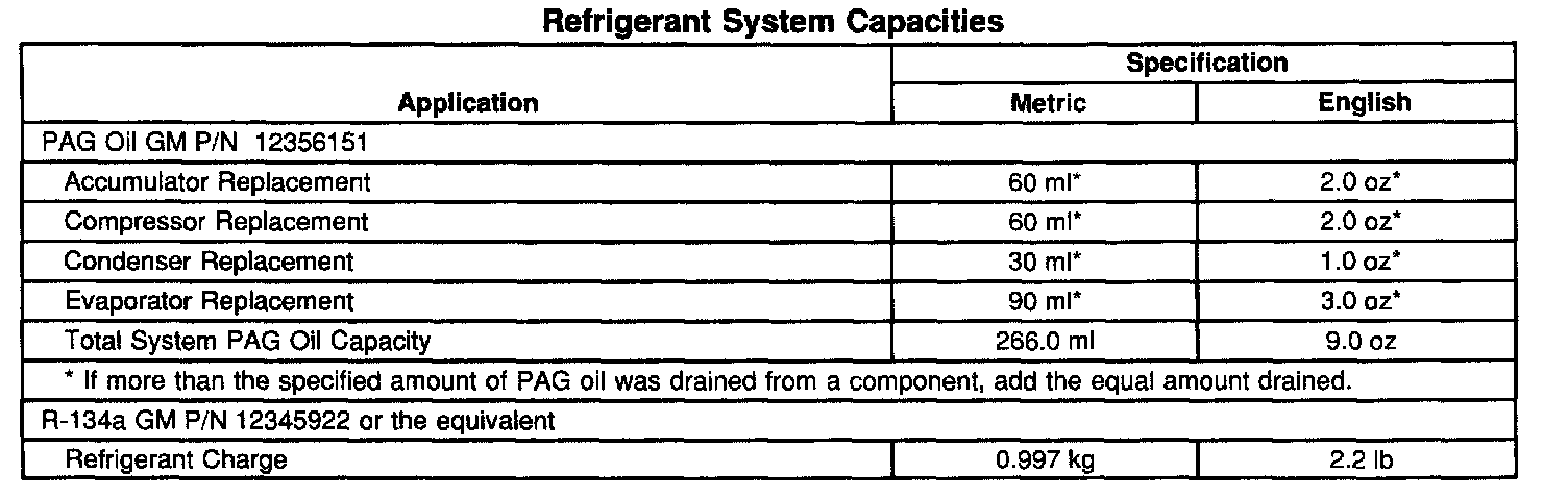 Refrigerant System Capacities:
