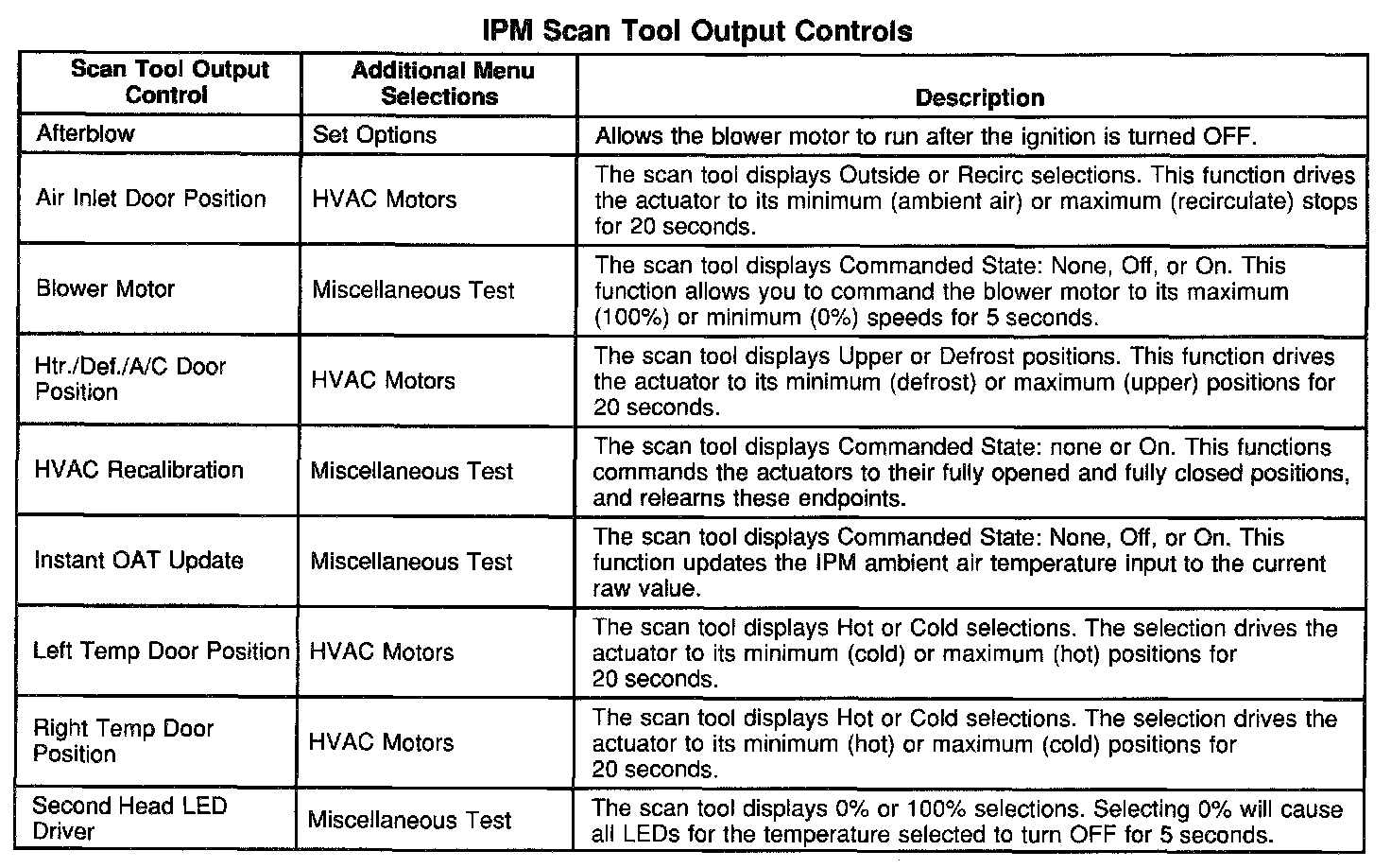 Scan Tool Output Controls - Instrument Panel Module (IPM)