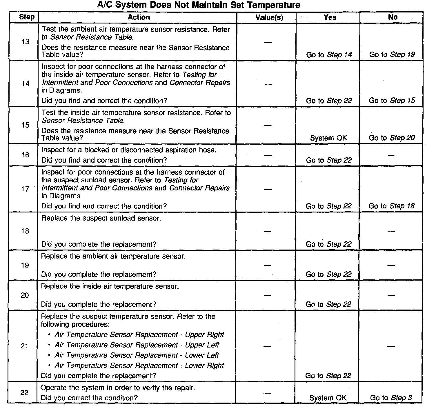 A/C System Does Not Maintain Set Temperature
