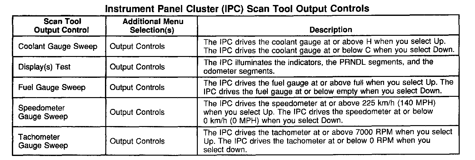 Instrument Panel Cluster (IPC) Scan Tool Output Controls:
