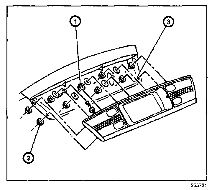 3. Install the nuts (1) in order to retain the backup lamp assembly to the rear compartment lid.
