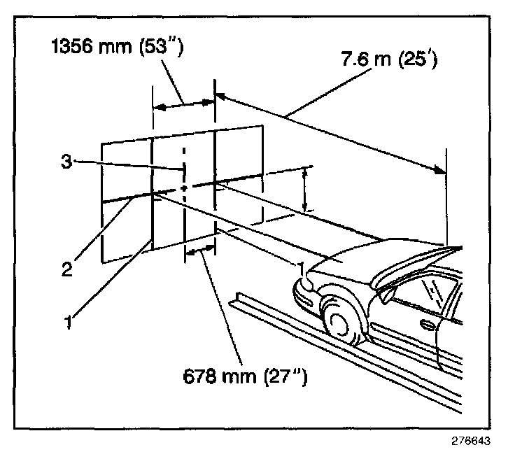 The area should consist of a level surface large enough to allow for a vehicle and an additional 7.62 m (25 ft) as measured from the face of the headlamps to the aiming screen.