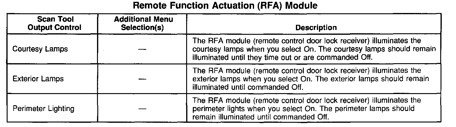 Scan Tool Output Controls - Remote Function Actuation (RFA) Module