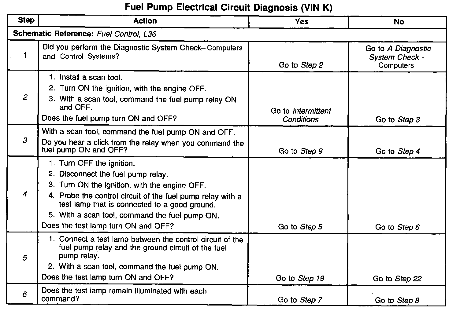 Fuel Pump Electrical Circuit Diagnosis