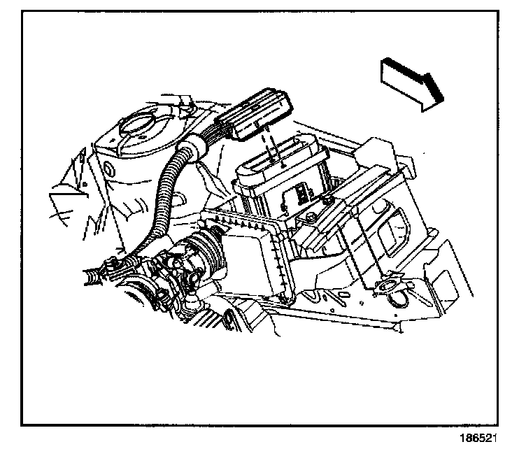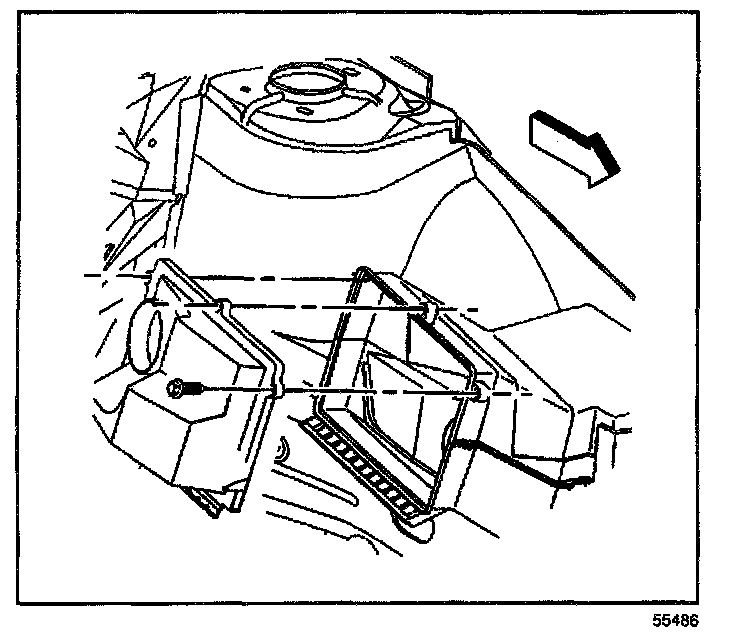 3. Inspect to see that the coolant recovery hose is not trapped under the air cleaner assembly.