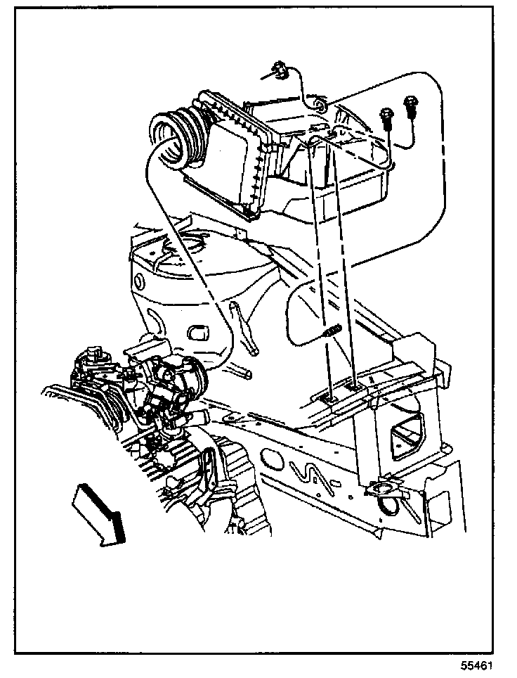 4. Install the air cleaner assembly to the radiator support with the bolts.