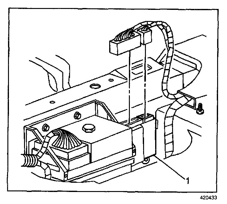 4. Remove the fastener retaining the rear door module (1).