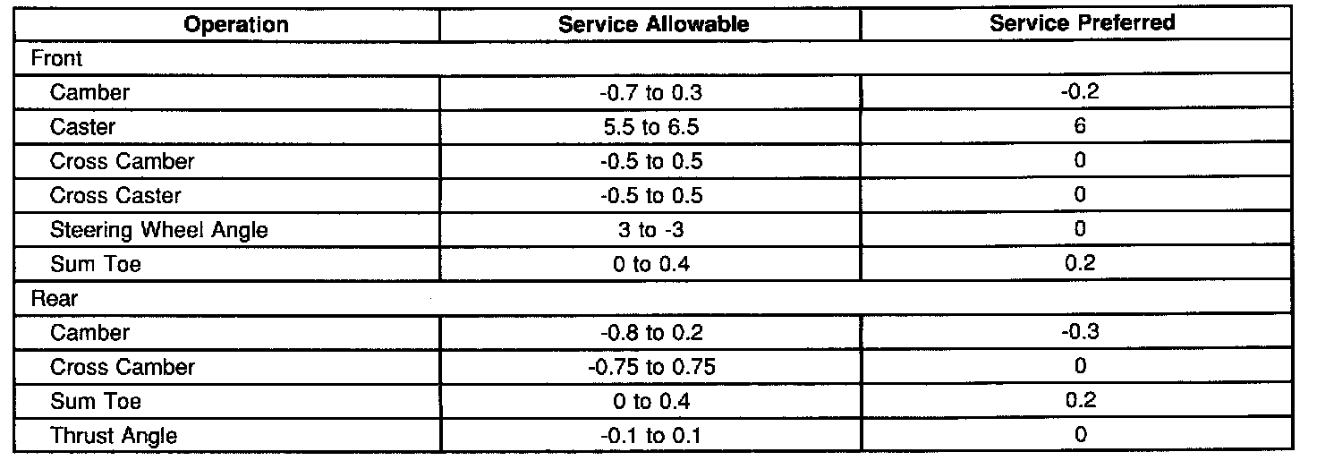 Wheel Alignment Specifications