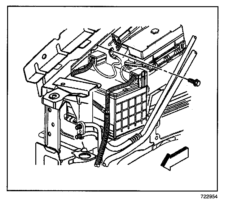 5. Install the bolt securing the battery negative cable to the side rail.