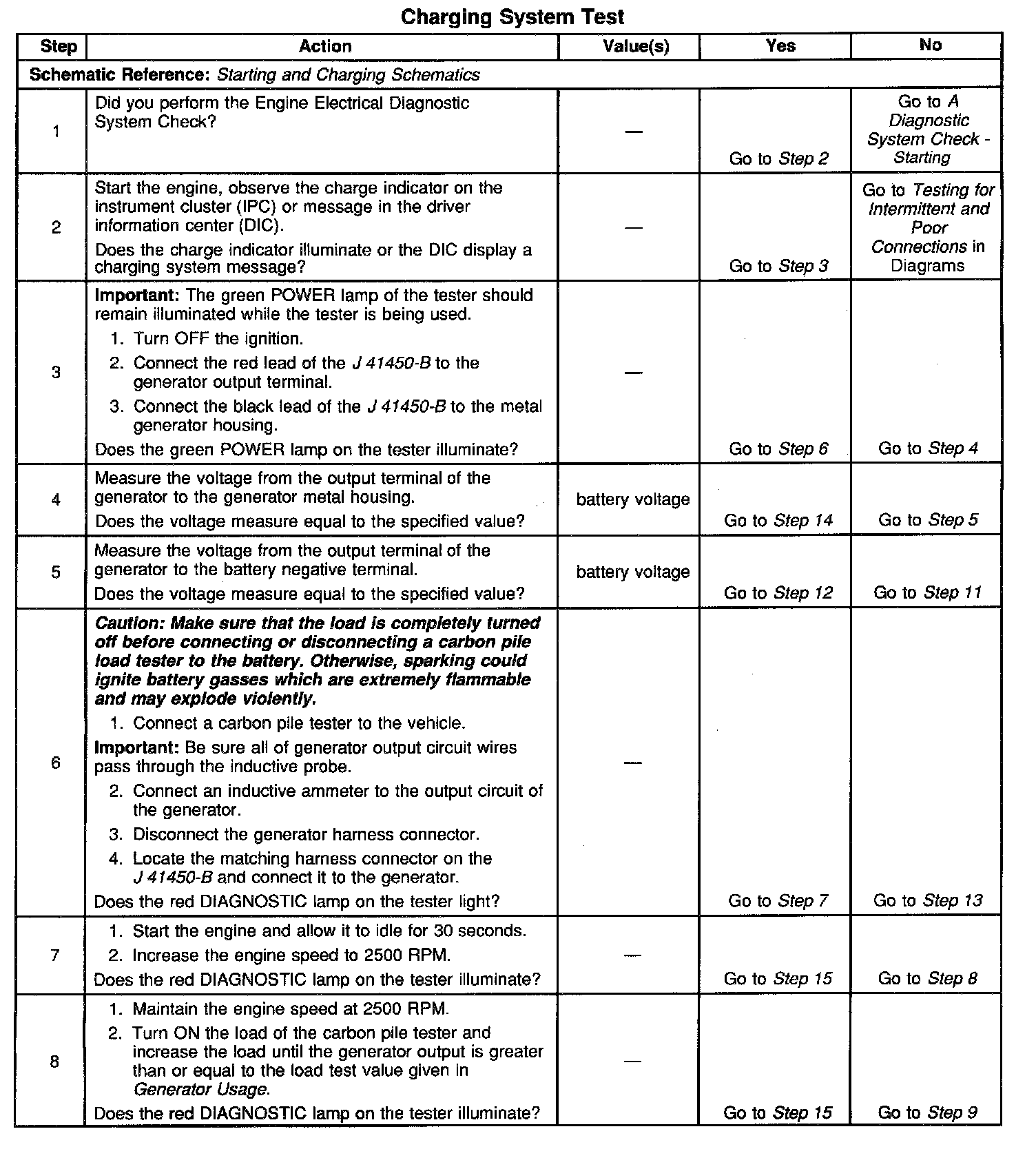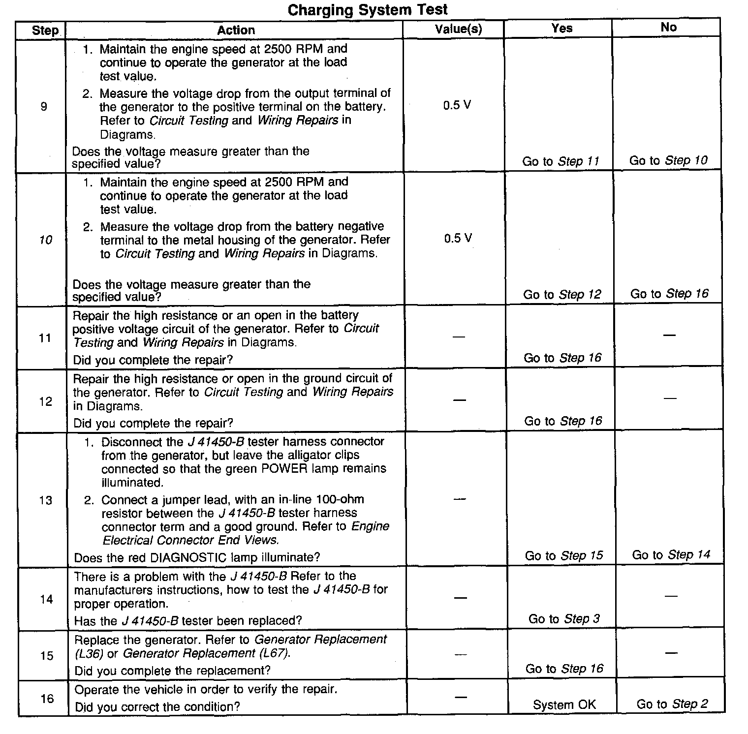 10. If the test has shown the generator to be OK, however the condition remains, test the PCM or its control circuit(s) to the generator.