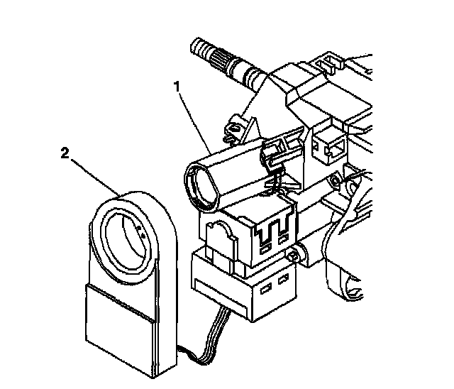4. Disconnect the connectors (1) and (2) of the ignition and key alarm switch assembly.