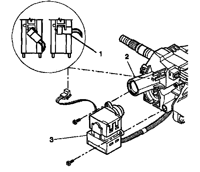 7. Remove 2 tapping screws from the ignition and key alarm switch assembly (3).