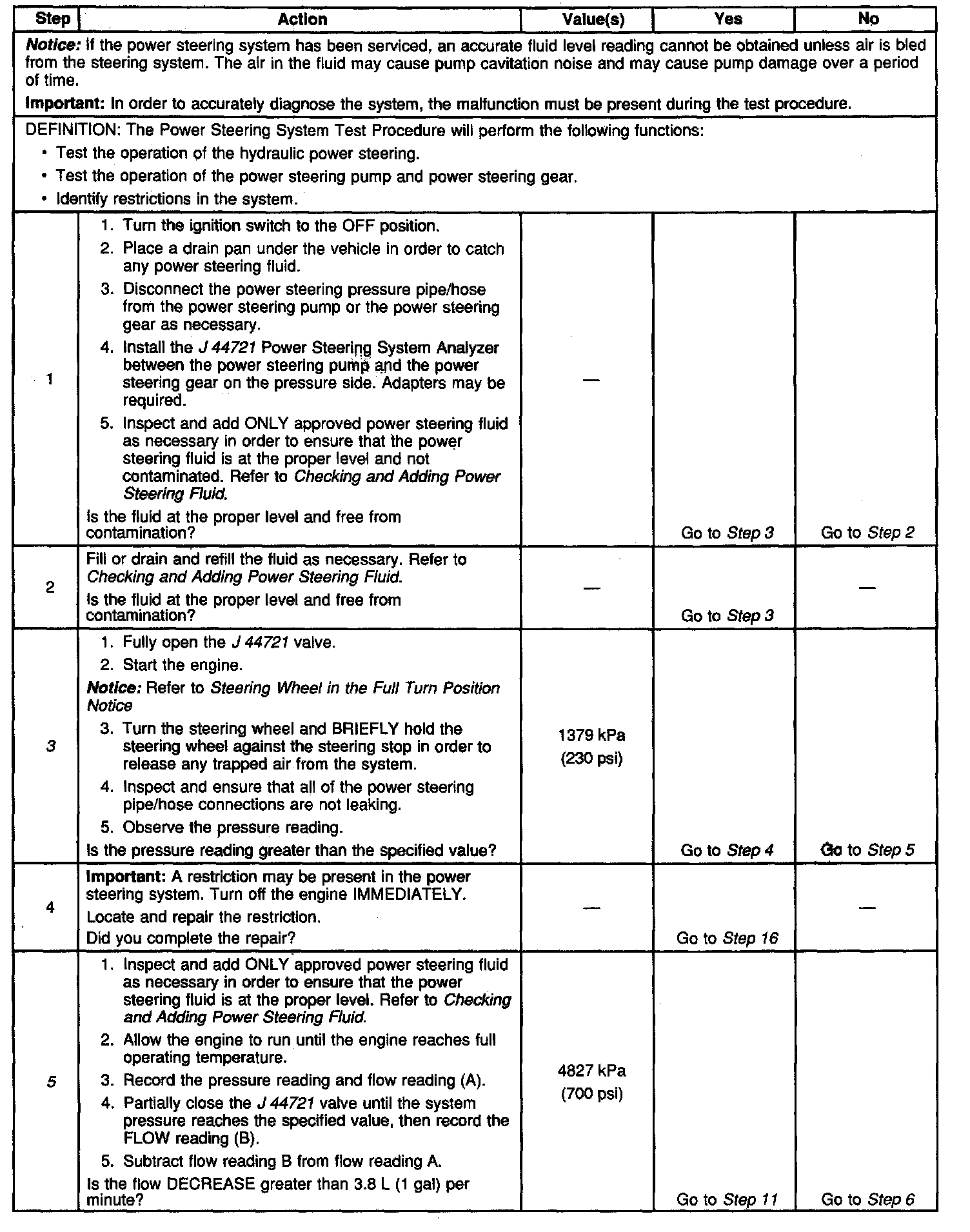 Power Steering System Test Procedure