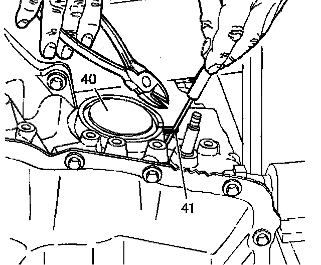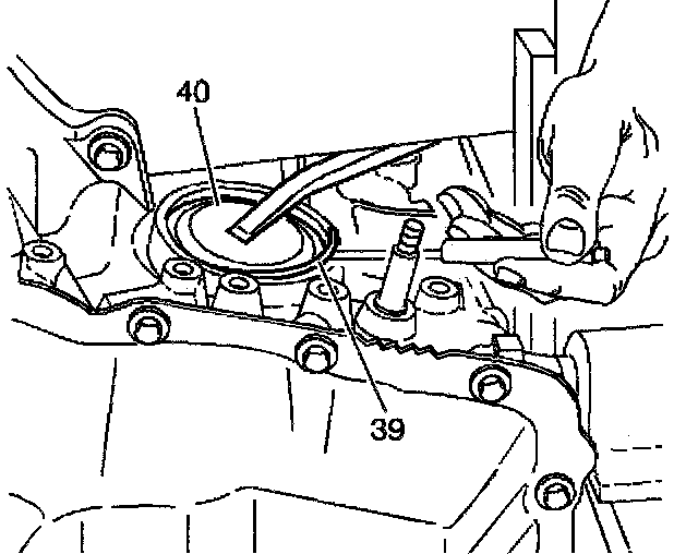 7. Depress the reverse servo cover (40), grasp one end of the cut seal (41) and pull the seal (41) out of the servo cover (40).