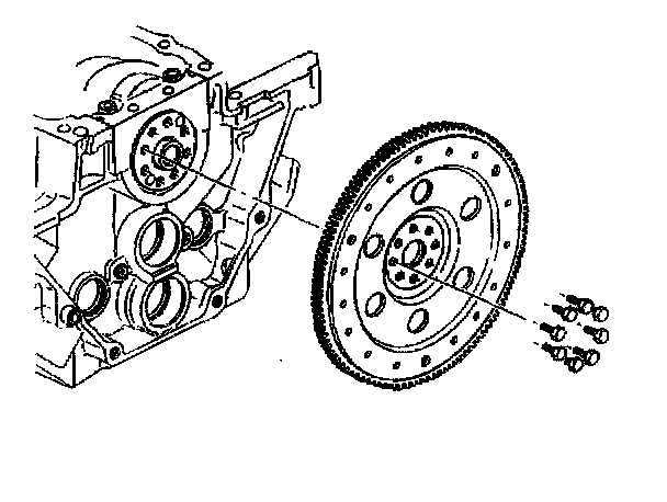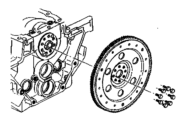 2. Remove the eight bolts attaching the flywheel to the crankshaft flange. Discard the bolts.