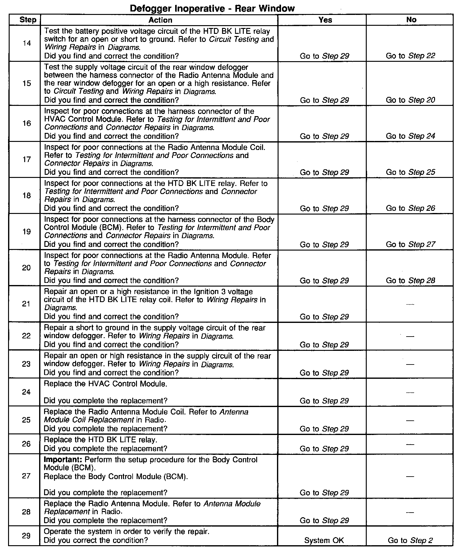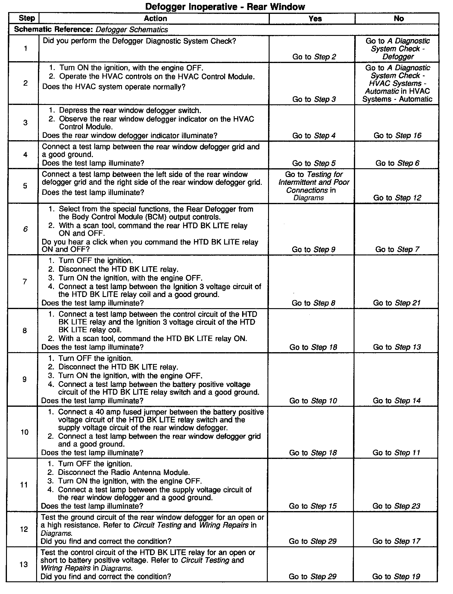 The number(s) below refer to the step number(s) on the diagnostic table.