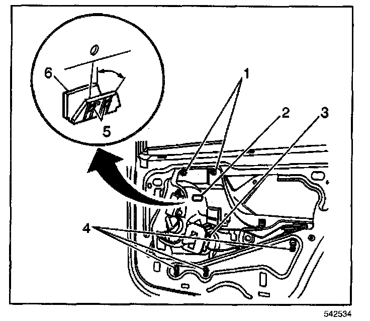 14. Check the window for proper adjustment. Refer to Window Adjustment - Rear Door