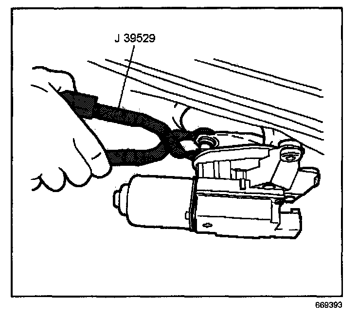 5. Disconnect the transmission drive link from the wiper motor crank arm using the J 39232.