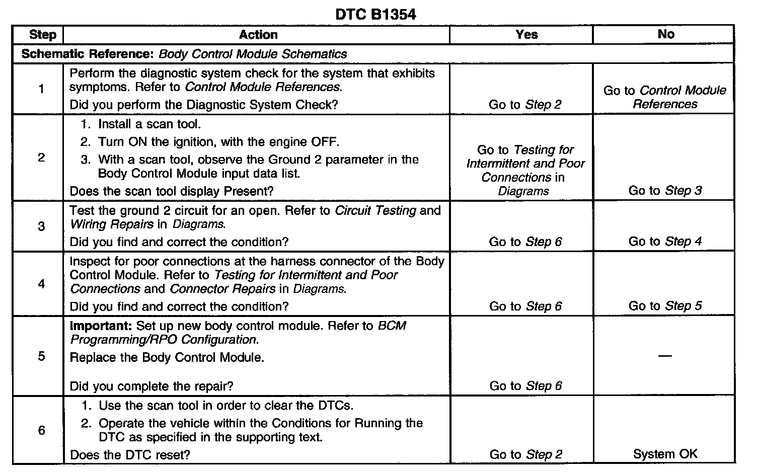 ^ A current DTC B1354 will clear if the BCM no longer detects the fault.