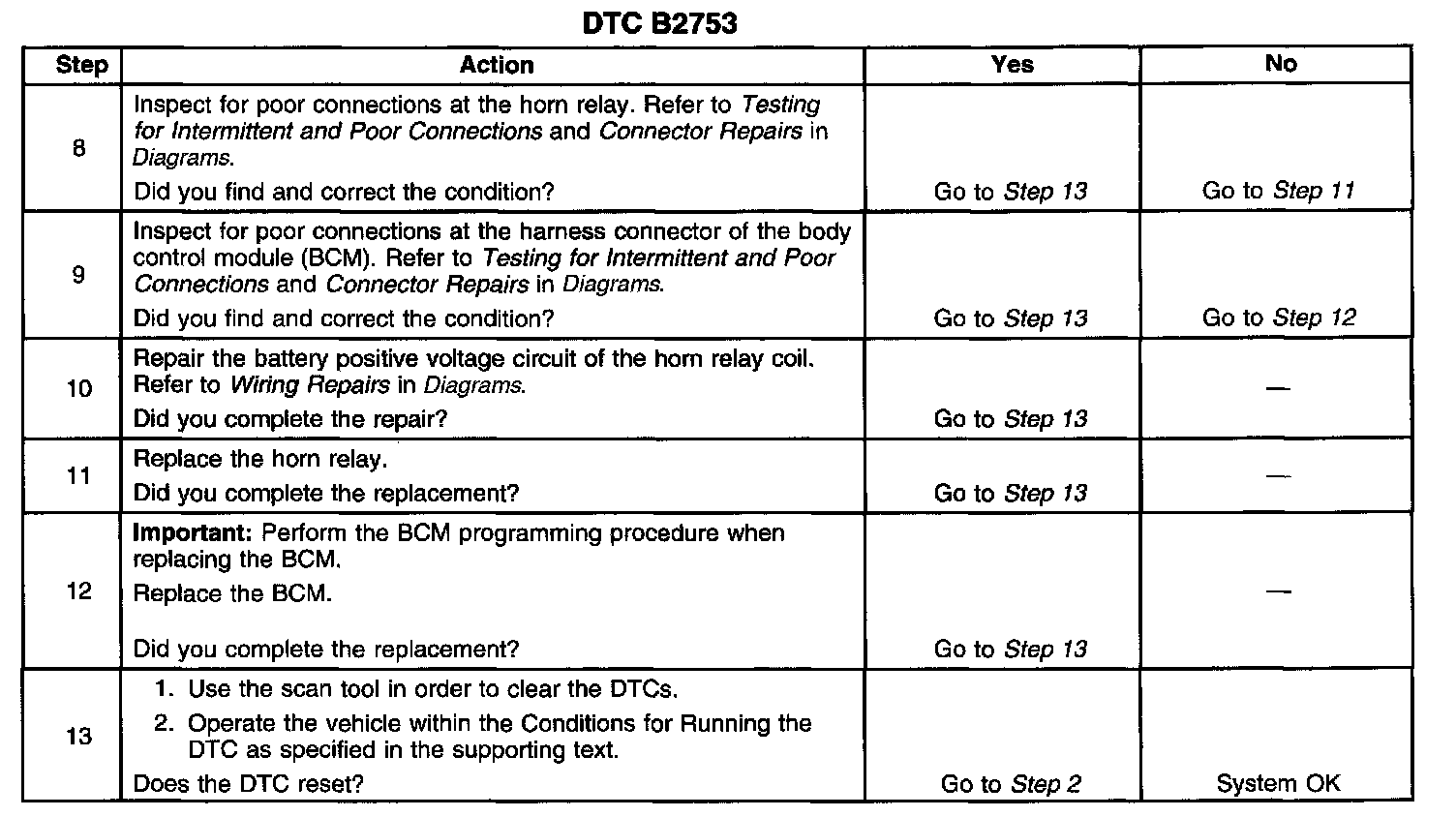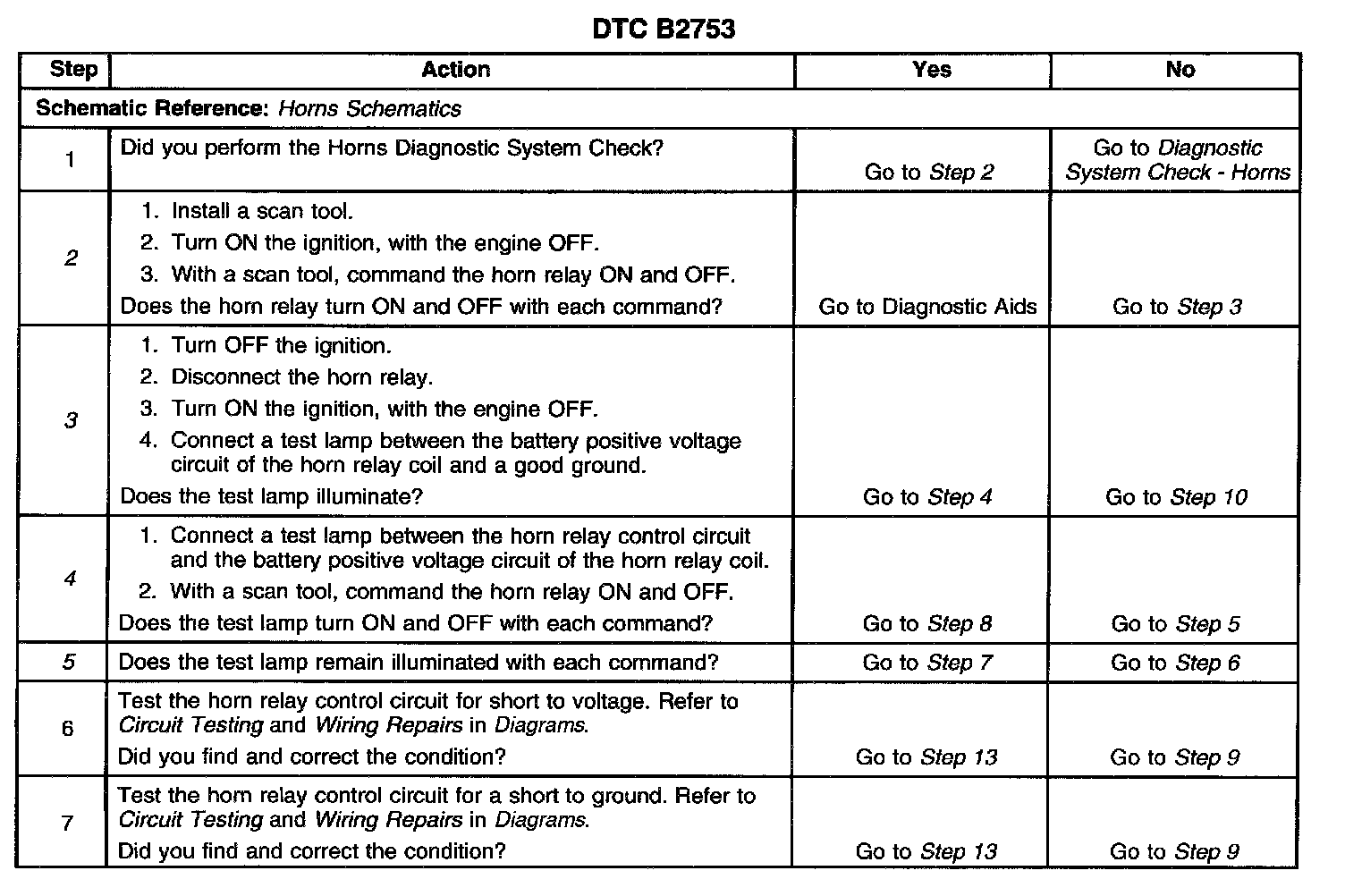 The number(s) below refer to the step number(s) on the diagnostic table.