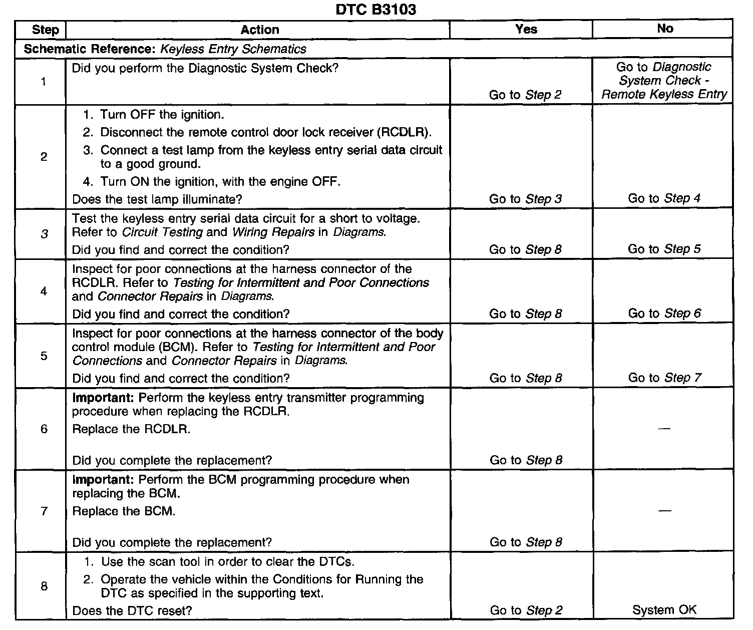 3. This step checks for a short to voltage in the keyless entry serial data circuit.