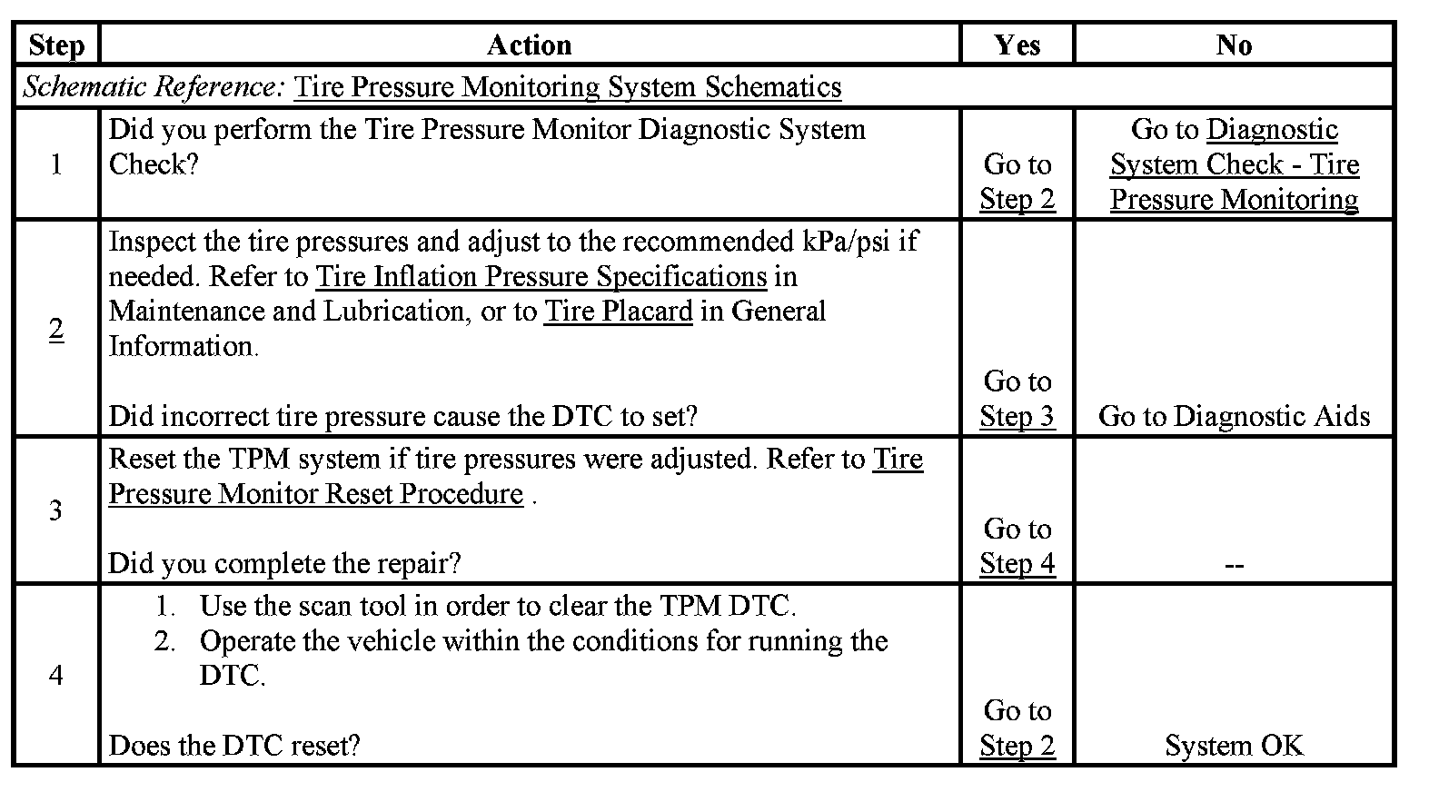 - A current DTC will clear when the TPM system has been reset.
