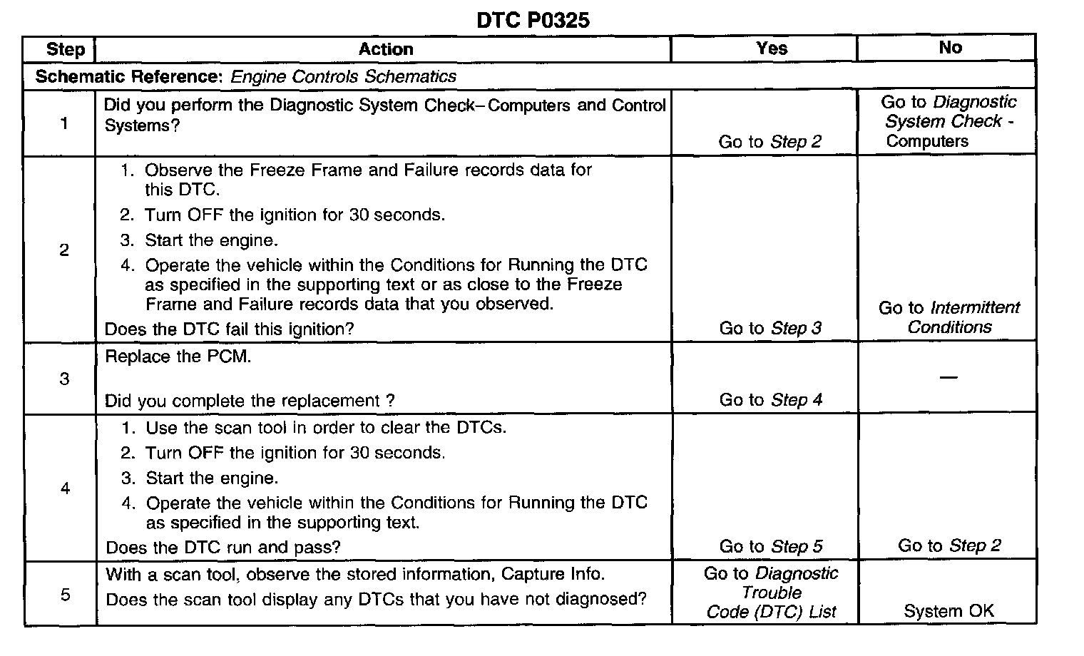 CIRCUIT DESCRIPTIONThe Knock Sensors (KS) produce an AC signal under all engine operating conditions. The Powertrain Control Module (PCM) calculates the average voltage range of each knock sensors signal. If the KS system is operating normally, the PCM should monitor the KS signal voltage varying above and below the calculated average range. This DTC will set if the PCM malfunctions in a manner which will not allow proper diagnosis of the KS system.