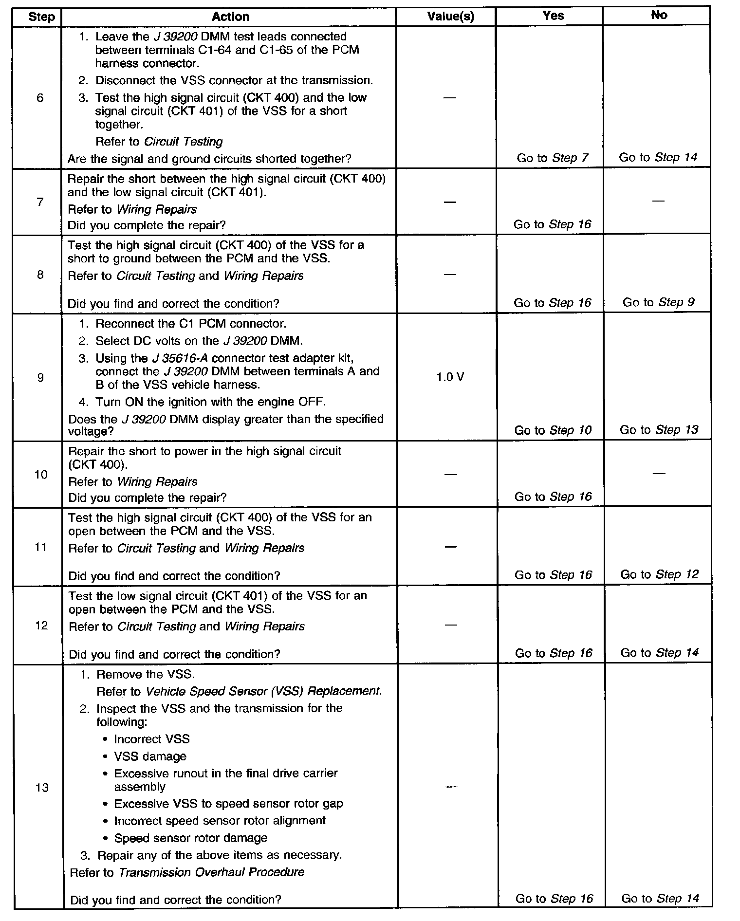3. This step tests the ability of the VSS to produce an AC voltage. This step also verifies the integrity of the wiring to the PCM.