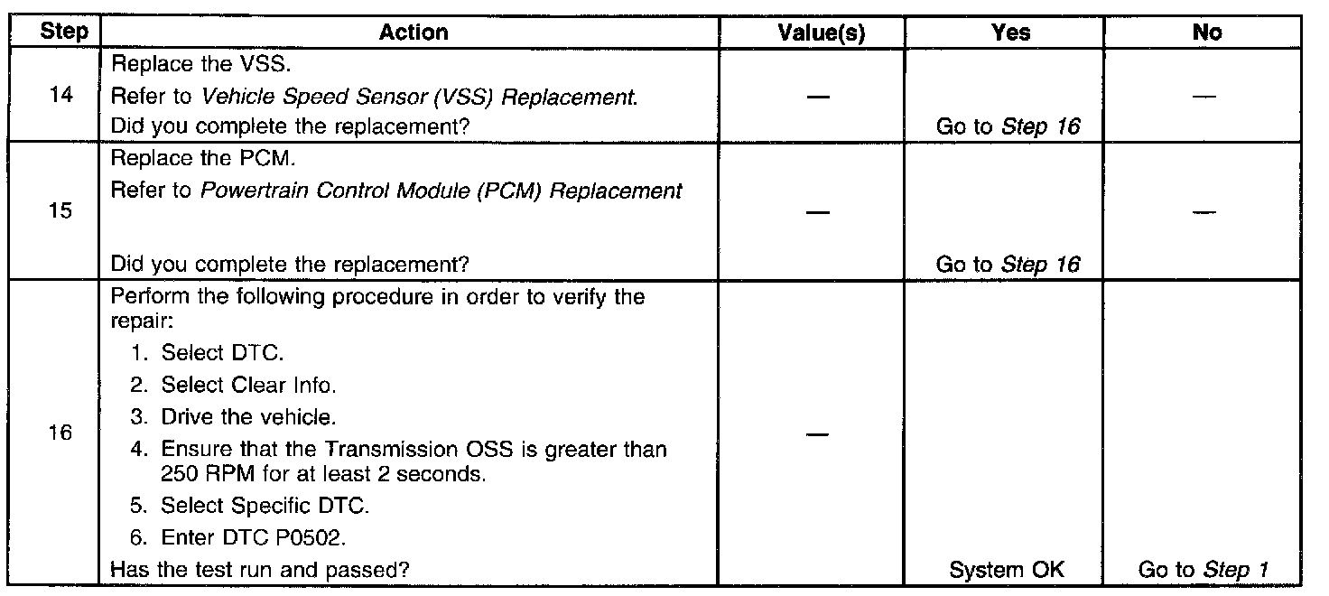 If the PCM detects a low vehicle speed with a high engine speed while in a drive range, then DTC P0502 sets. DTC P0502 is a type B DTC.