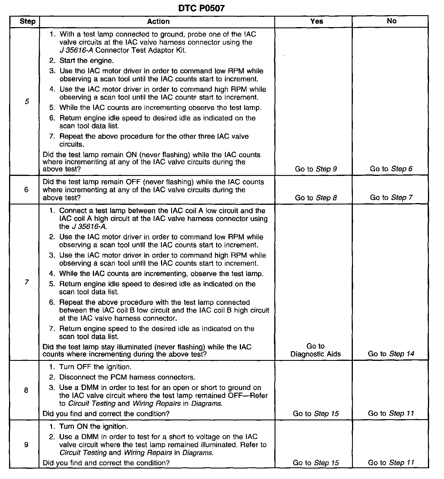 5. This test will determine the ability of the Engine Controller and IAC valve circuits to control the IAC valve.