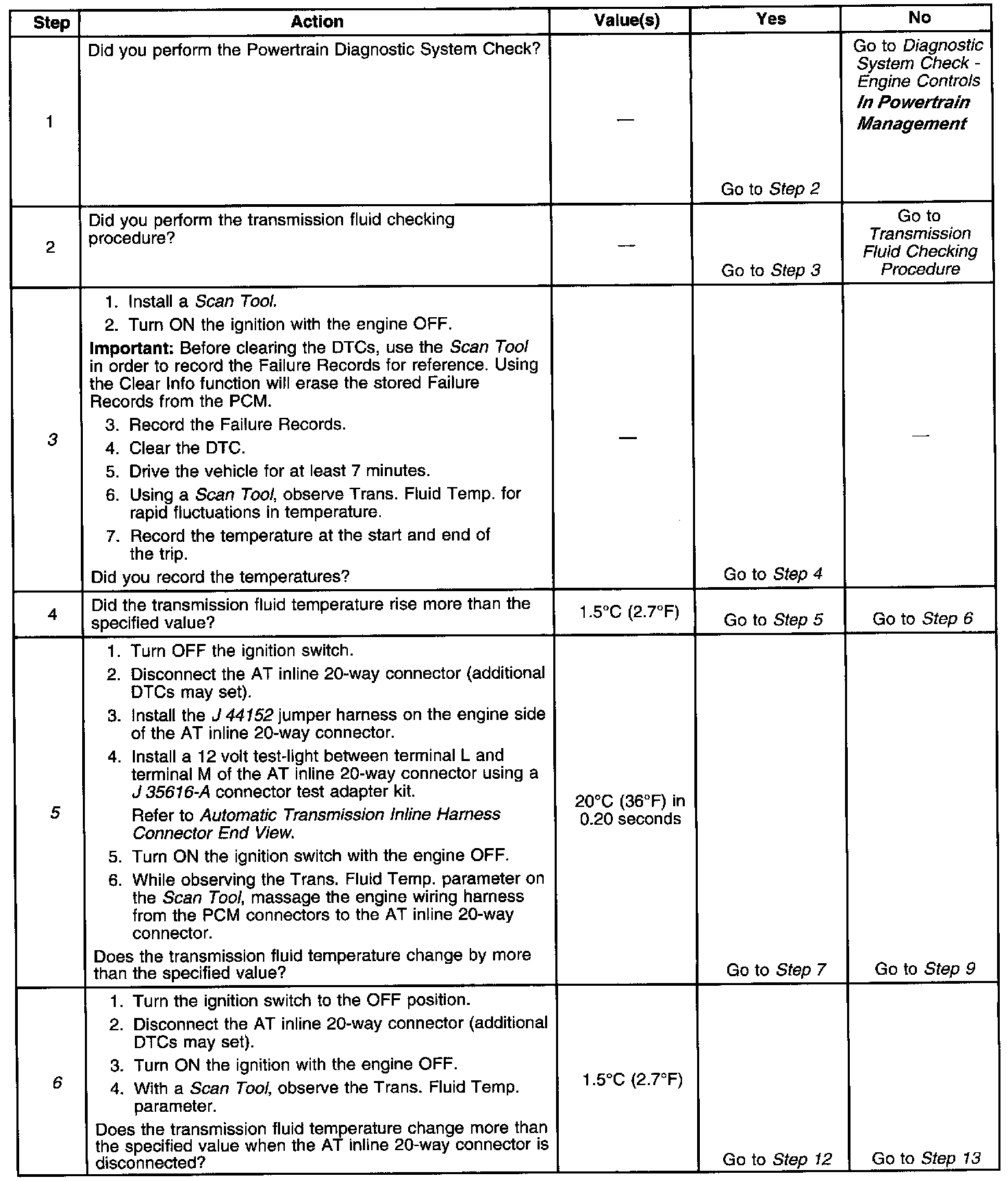 6. This step determines if a condition exists with the PCM or TFT sensor.