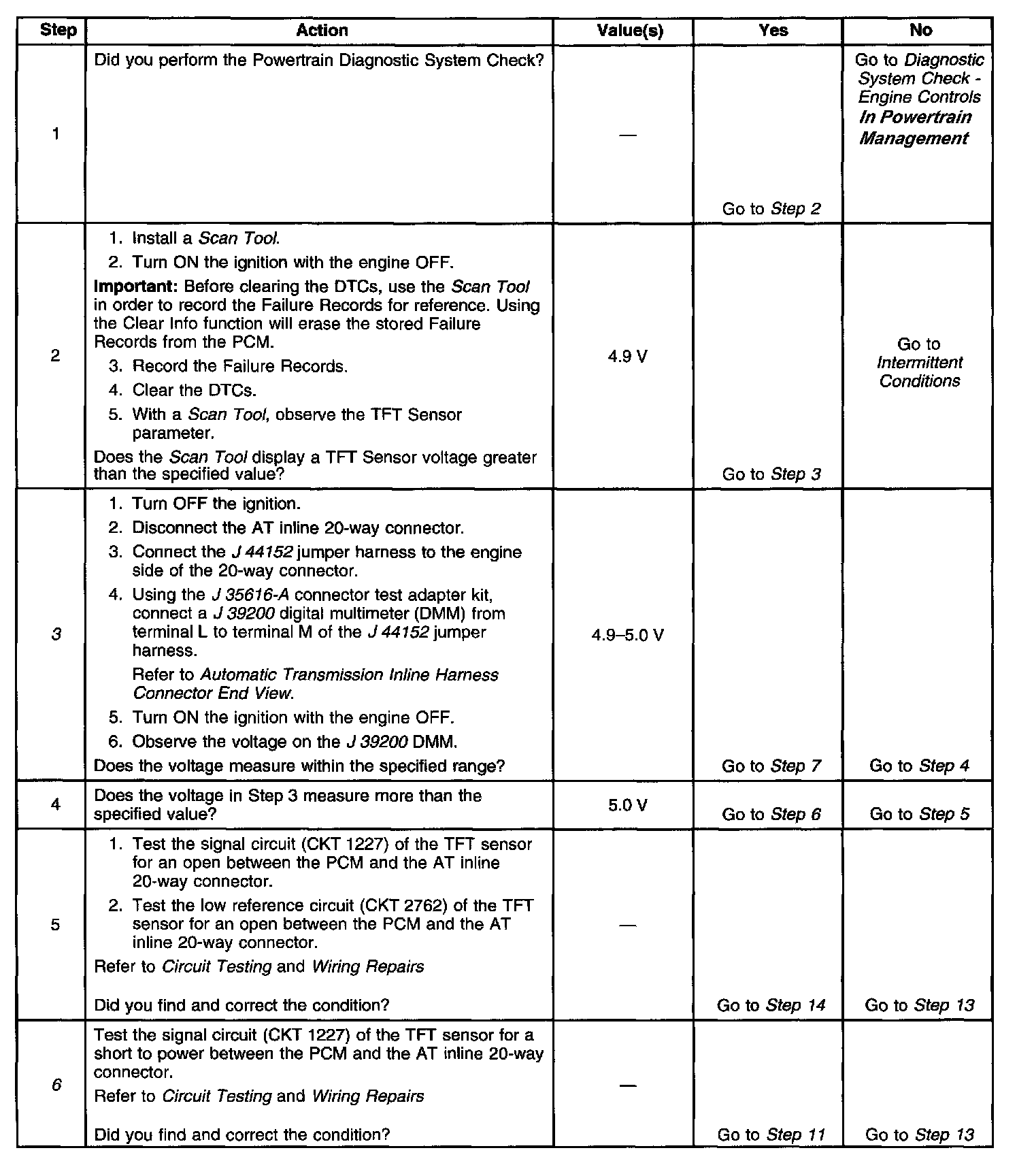 9. A short to the TFT sensor signal circuit and any other circuits in the transmission harness could cause the TFT sensor to open.