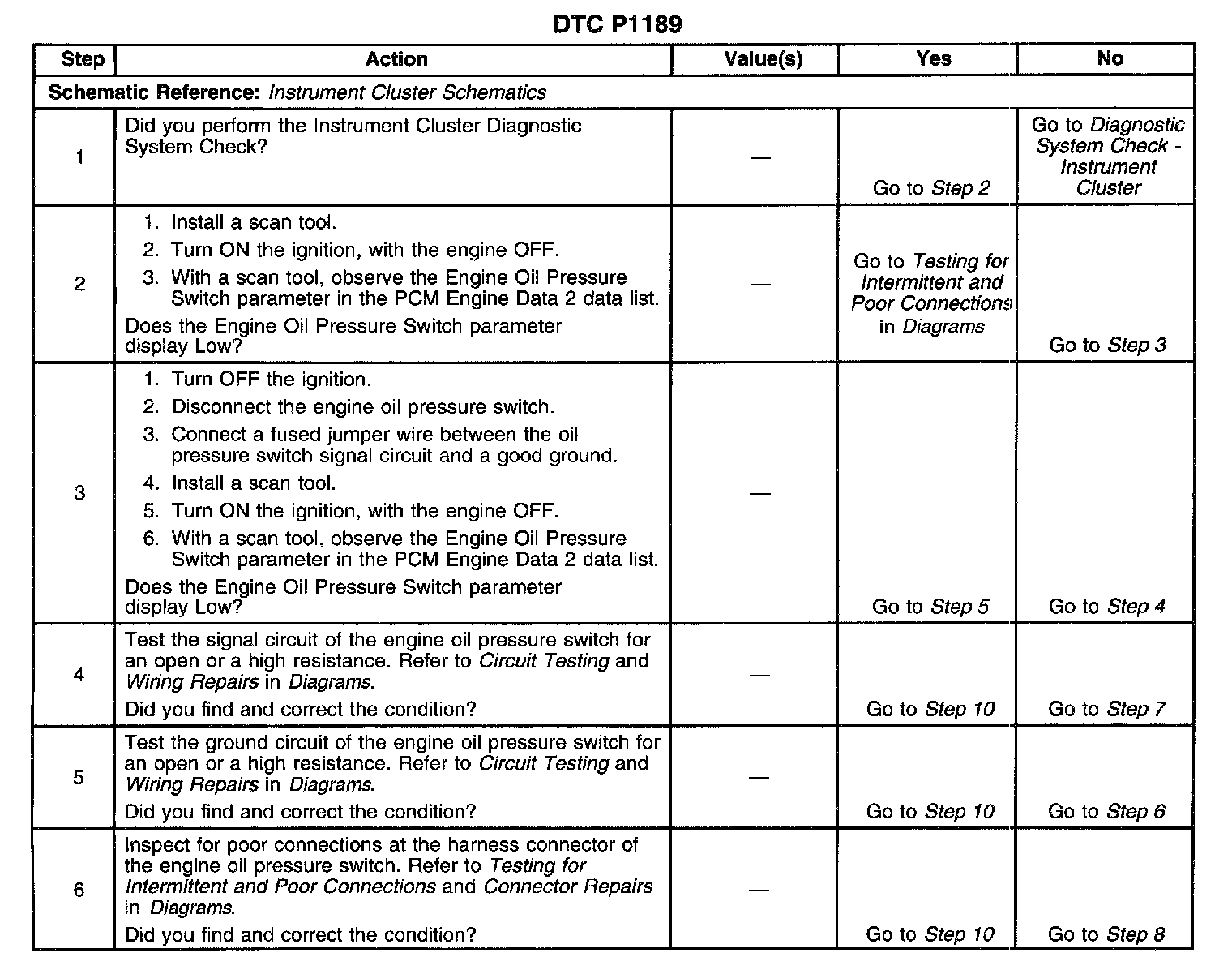 ^ The PCM detects that the oil pressure switch signal circuit is high.