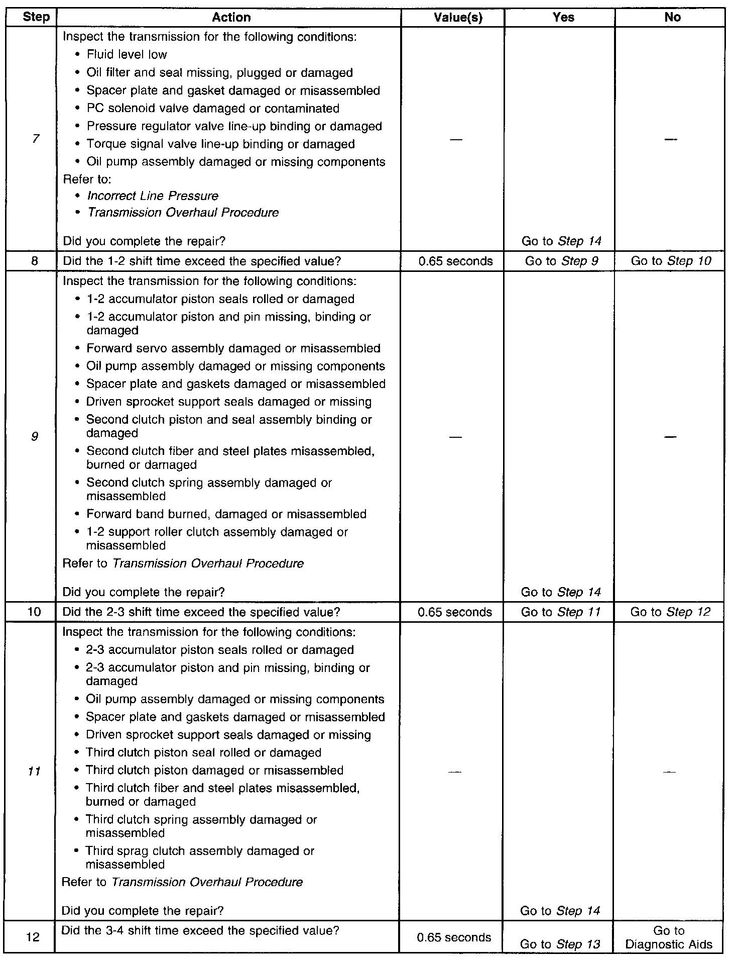 11. This step inspects or repairs components that may cause a maximum adapt and long 2-3 upshift.