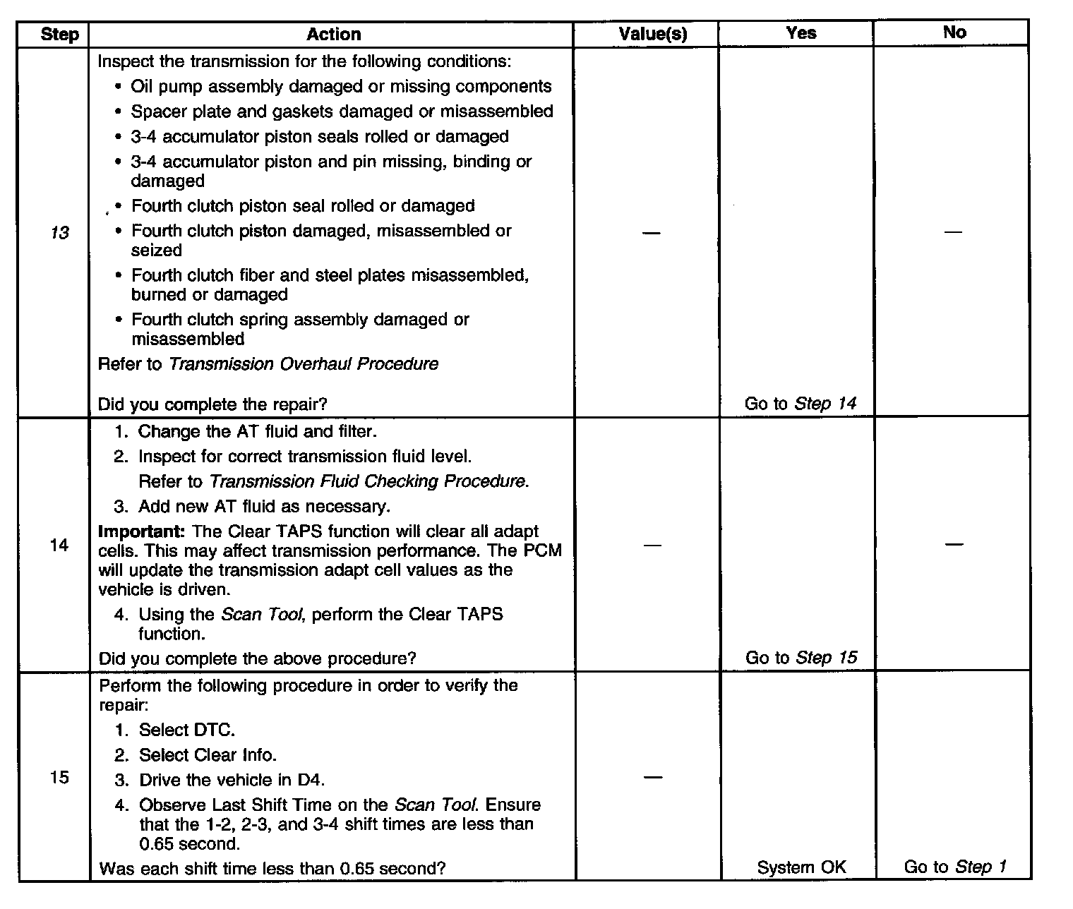 12. This step inspects or repairs components that may cause a maximum adapt and long 3-4 upshift.