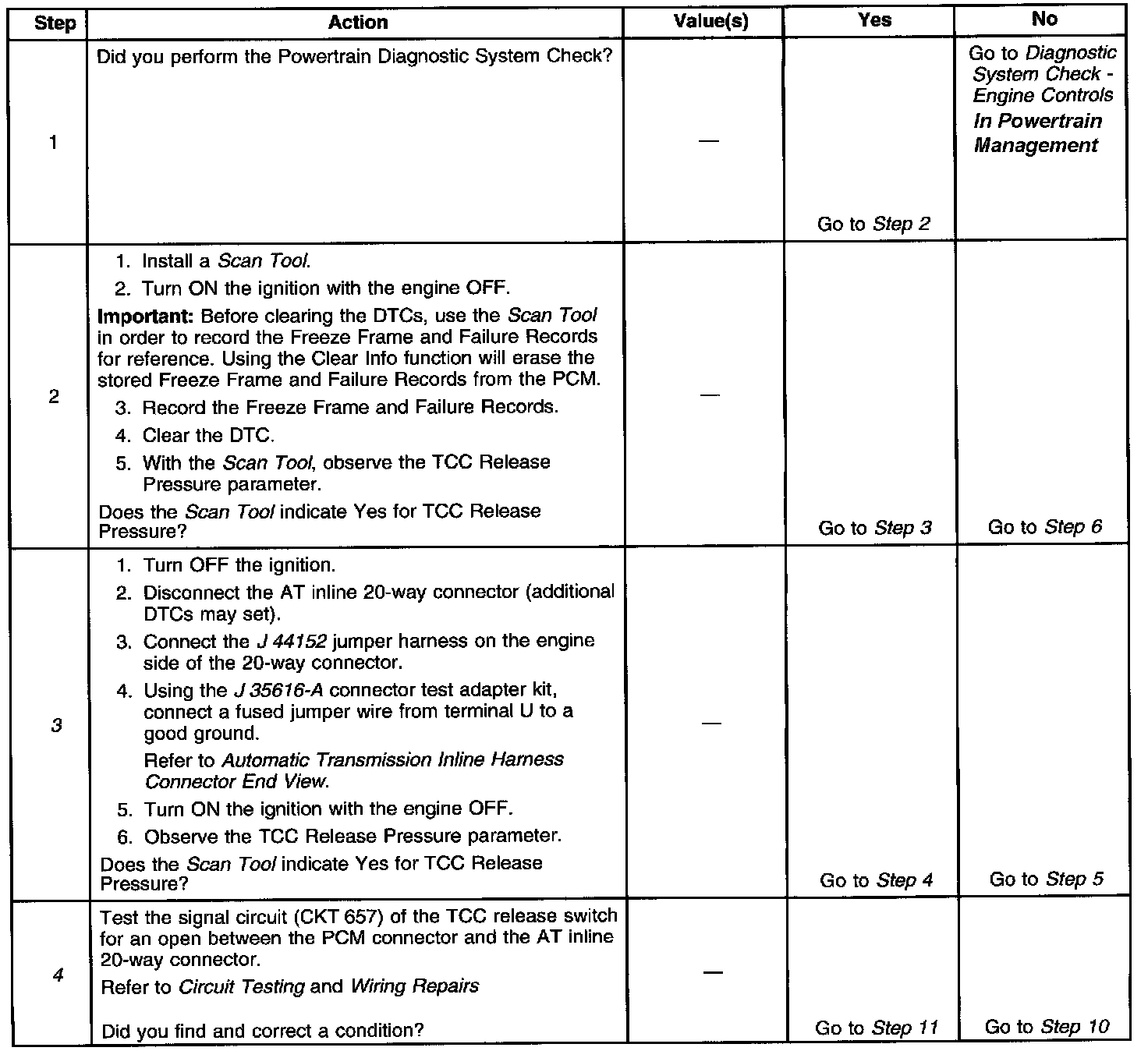 ^ No TCC PWM solenoid valve DTC P0741, P0742 or P1860.