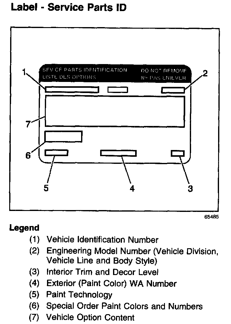 The service parts identification label has been developed and placed on the vehicle to help service and parts personnel identify parts and options that were originally installed on the vehicle.