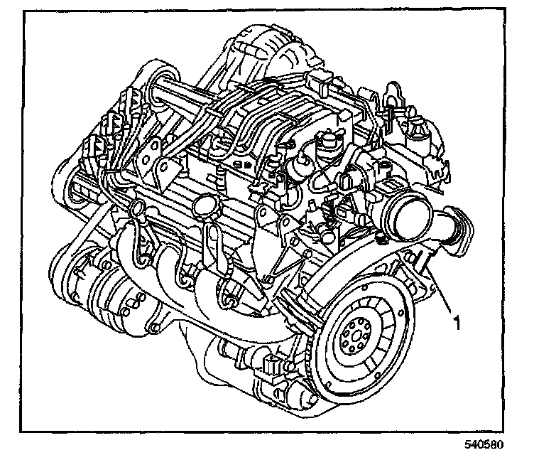 The primary location of the VIN derivative for the 3800 L36 and L67 engine is above the starter motor on the engine block (1).