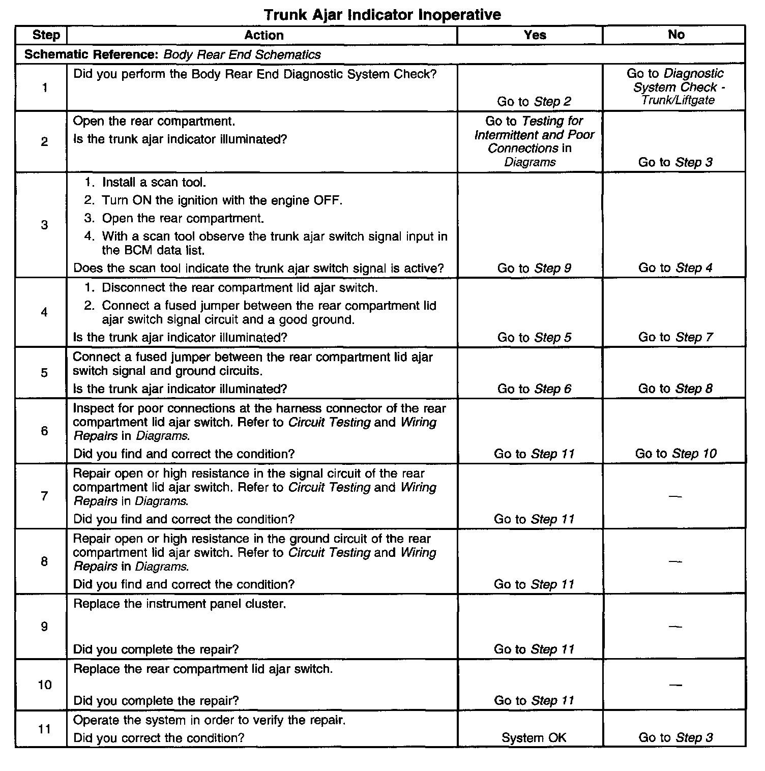 Trunk Ajar Indicator Inoperative