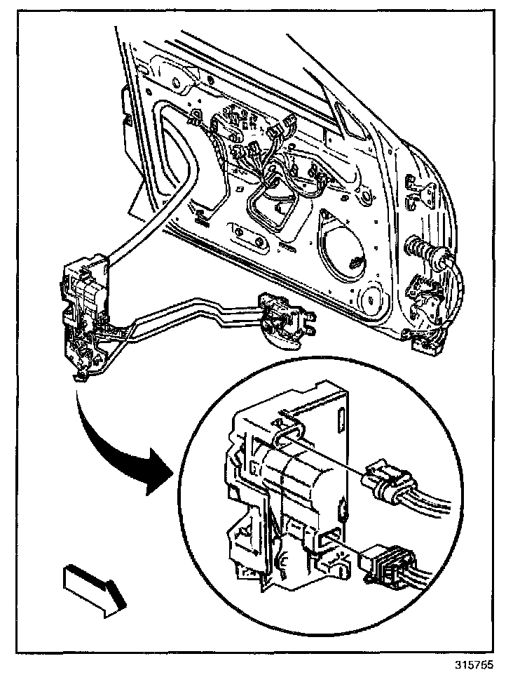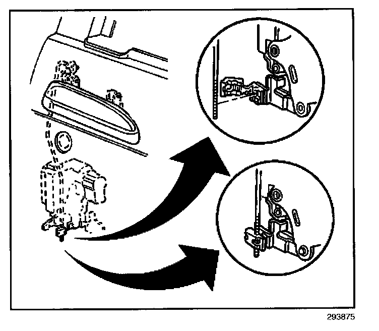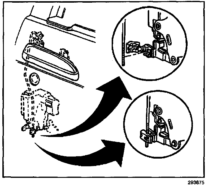 6. Position the outside door handle rod in the clip in order to eliminate any free play in the outside door handle.