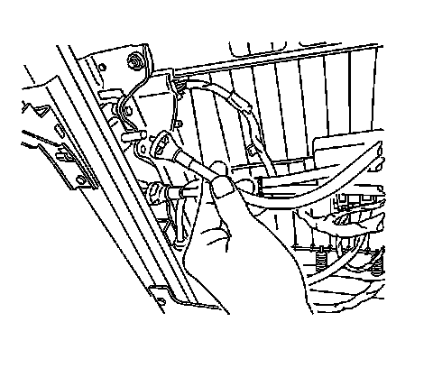 Important: Initial removal of the nut securing the motor support bracket is suggested to gain access to the cable connector at motor for the inboard passenger side or the outboard driver side rear vertical gearnut.